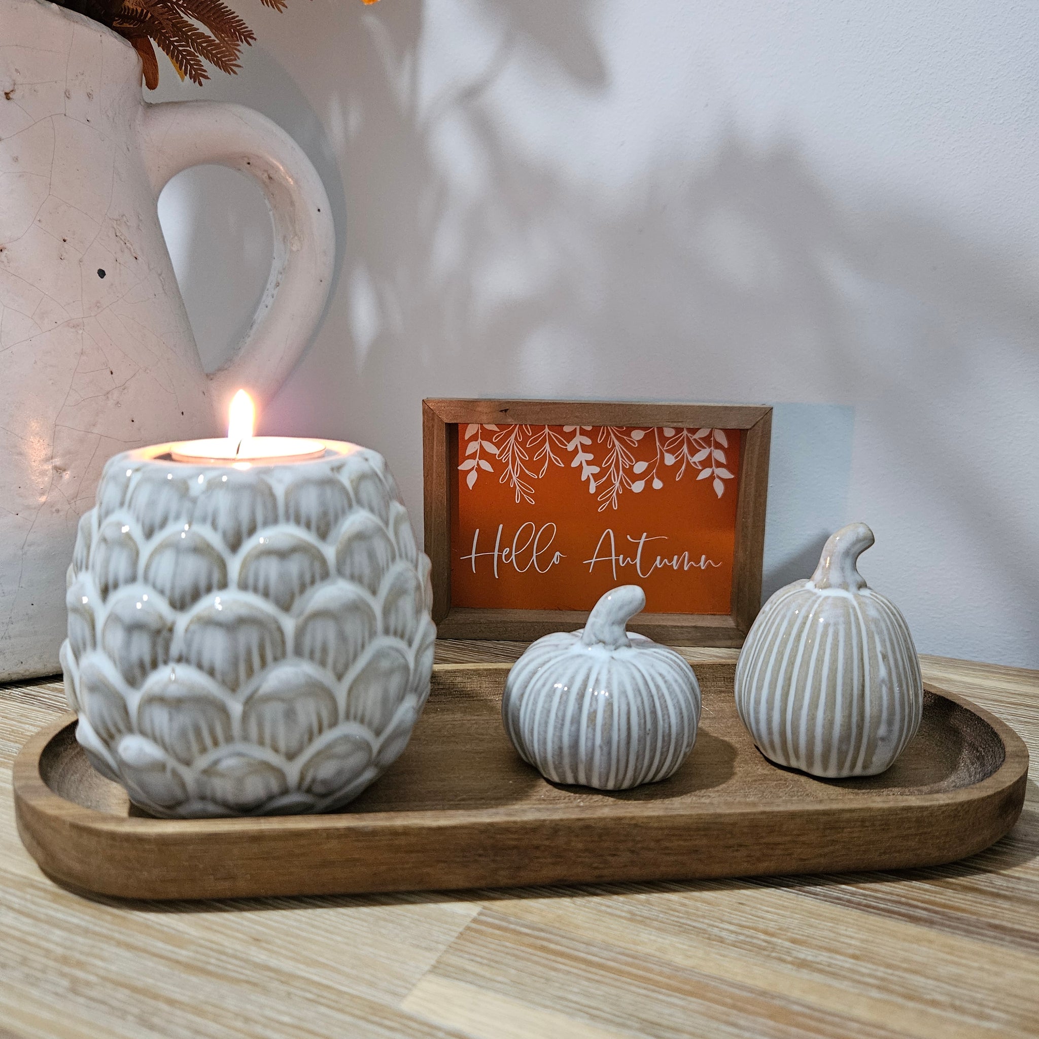 These white minature pumpkin ornaments are a must have this autumn season.Short Round Pumpkin 5.5cm