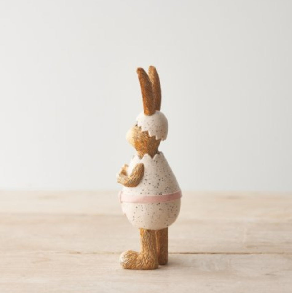 Eddie the Easter Egg Rabbit is an adorable resin rabbit dresses in a speckled pink egg costume who has a touch of whimsy and charm & the perfect decor to add to the home this Easter. Its sweet expression and detailed features make it an eye-catching addition to any space. A great gift idea for Easter or any special occasion, this charming rabbit will bring joy and delight wherever it goes.