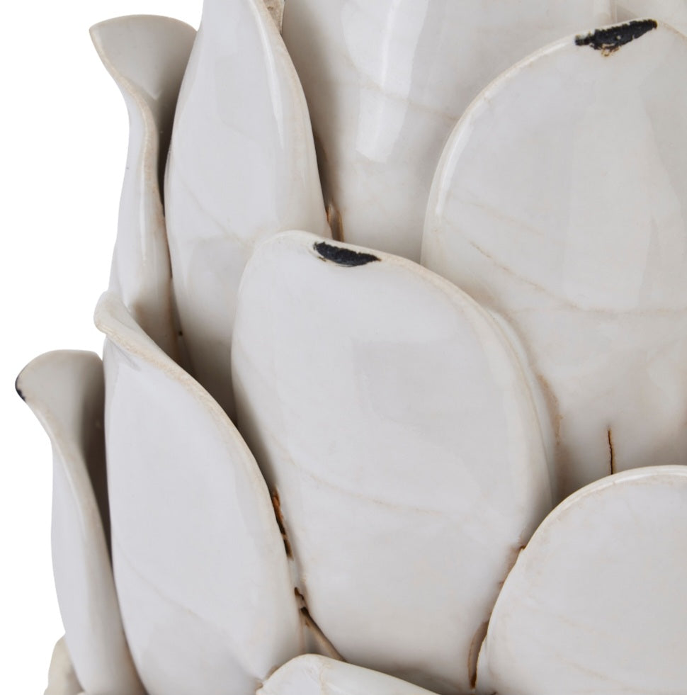 A distinctive artichoke ornament brought to life by its ivory cream glaze and distressed detailing. The perfect handcrafted ceramic to finish the look of a favourite sideboard or shelf space.